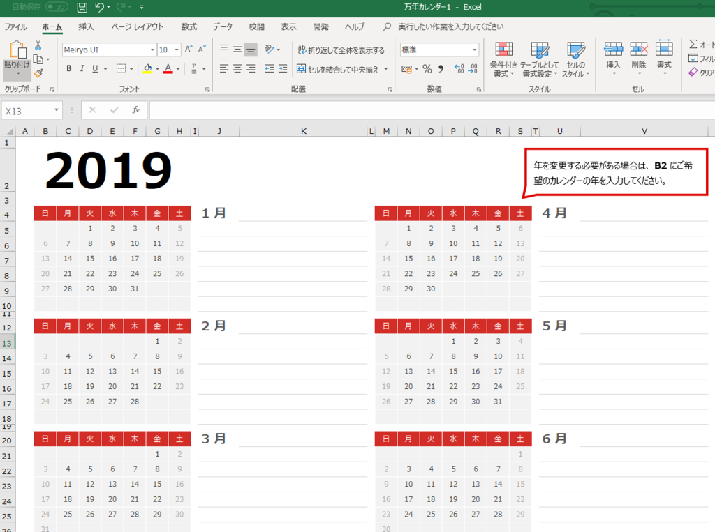 なるほど。とりあえず2019年だけ作りたいので、カレンダーはこのままいきます(;^_^A意外と簡単。